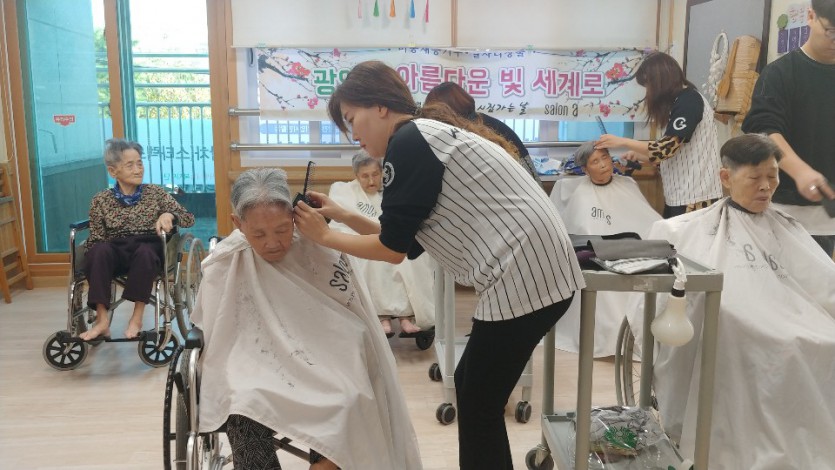 어르신들 한분, 한분 정성스레 머리를 다듬어주시는 저 손길~